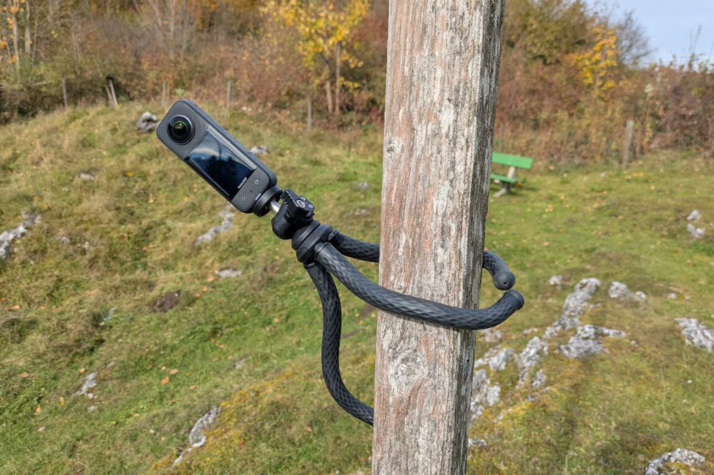 Dieses Ding kann ich einfach ĂŒberall hinstellen oder dranmachen – auch in eine Felswand neben der StraĂe oder an eine StraĂenlaterne. Damit kann ich nicht nur meine Insta360-Cams hinstellen, mit einem Smartphone-Adapter und Selbstauslöser kann ich zur Not auch mein Handy einspannen fĂŒr Fotos oder Videos. - Stativ / Selfie-Stick